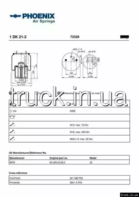 Пневмоподушка BPW 30 пластиковый стакан === PHOENIX ===
