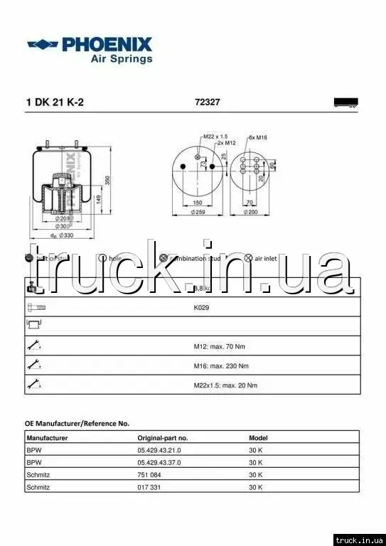 Пневмоподушка BPW 30K пластиковый стакан === PHOENIX ===