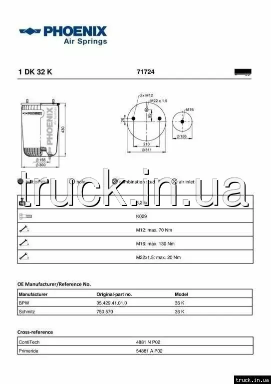 Пневмоподушка BPW 36K без стакана === PHOENIX ===
