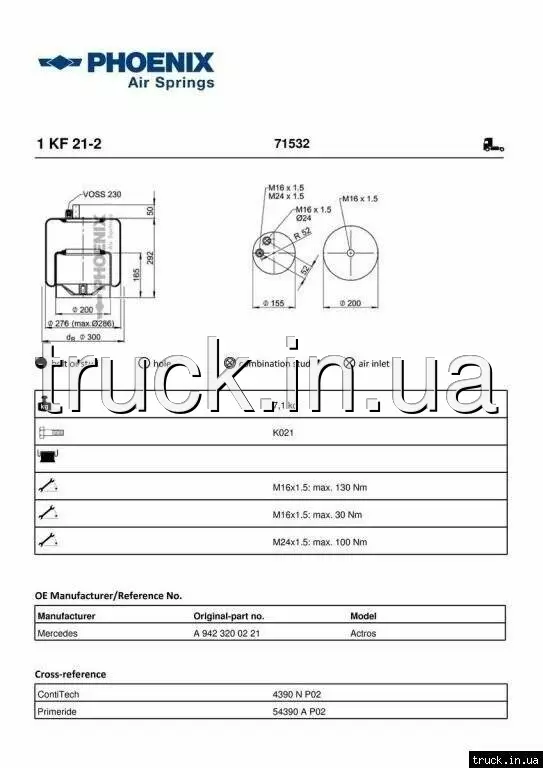 Пневмоподушка MERCEDES ACTROS 1KF21-2, 4390NP02 === PHOENIX ===
