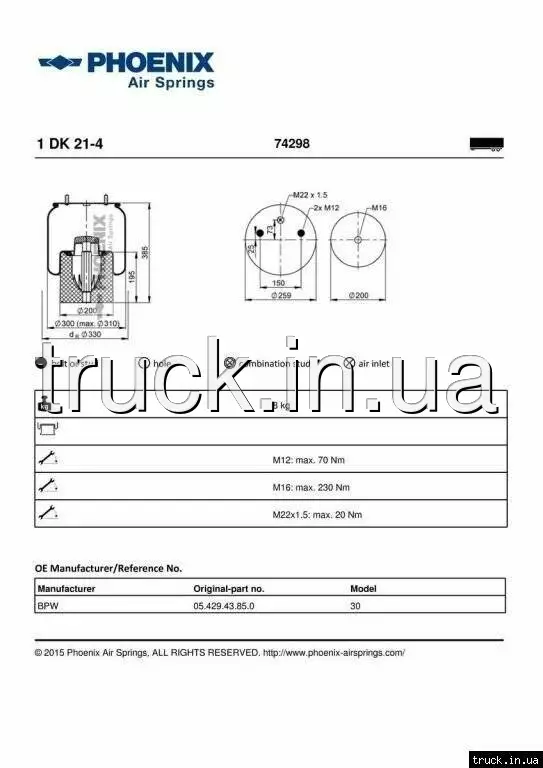 Пневмоподушка BPW пластиковый стакан === PHOENIX ===