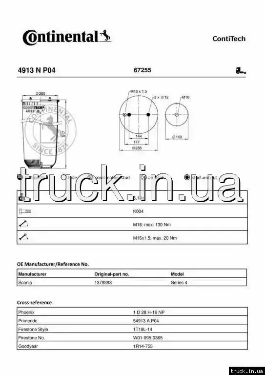 Пневмоподушка SCANIA 114/124 без стакана === CONTITECH AIR SPRING ===