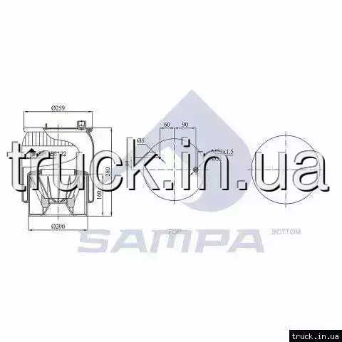 Пневмоподушка MERCEDES ACTROS 4 задняя левая SP556122-KP03, 9613203621 === SAMPA ===