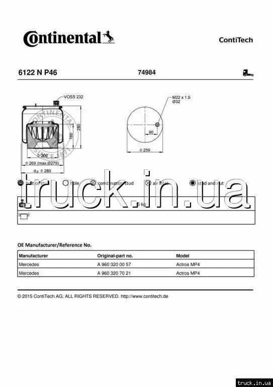 Пневмоподушка MERCEDES ACTROS 4 пластиковый стакан 6122NP46, 9603207021 === CONTITECH AIR SPRING ===