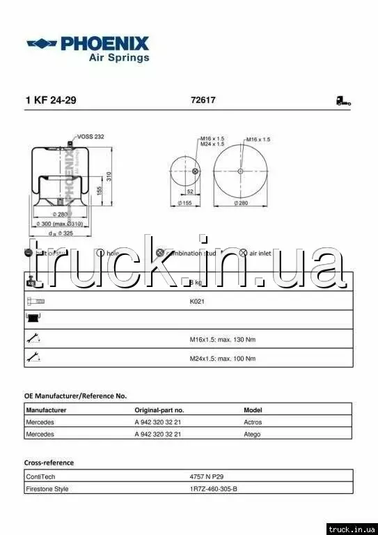 Пневмоподушка MERCEDES ATEGO задняя === PHOENIX ===