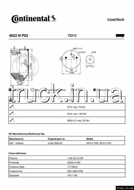 Пневмоподушка SAF без стакана === CONTITECH AIR SPRING ===