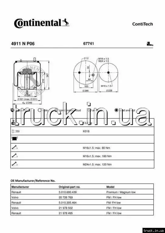 Пневмоподушка VOLVO,RENAULT MAGNUM,PREMIUM задняя === CONTITECH AIR SPRING ===