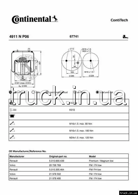 Пневмоподушка VOLVO,RENAULT MAGNUM,PREMIUM задняя === CONTITECH AIR