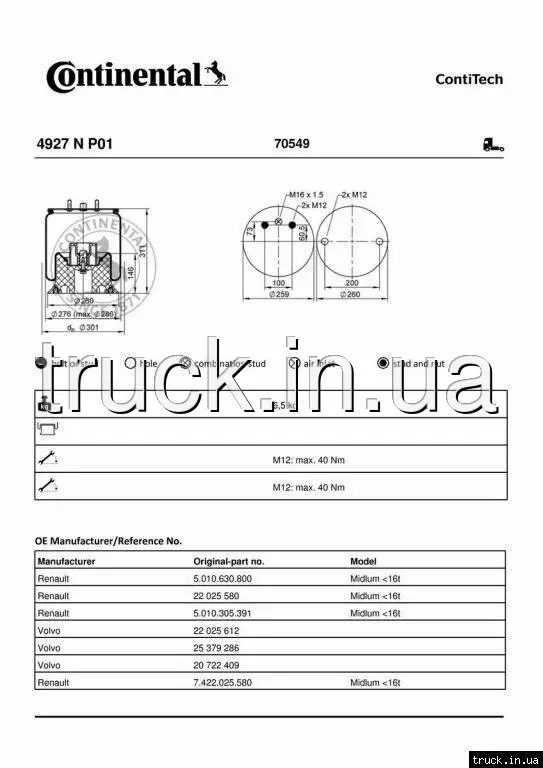 Пневмоподушка VOLVO FL,RENAULT MIDLUM DXI задняя === CONTITECH ===