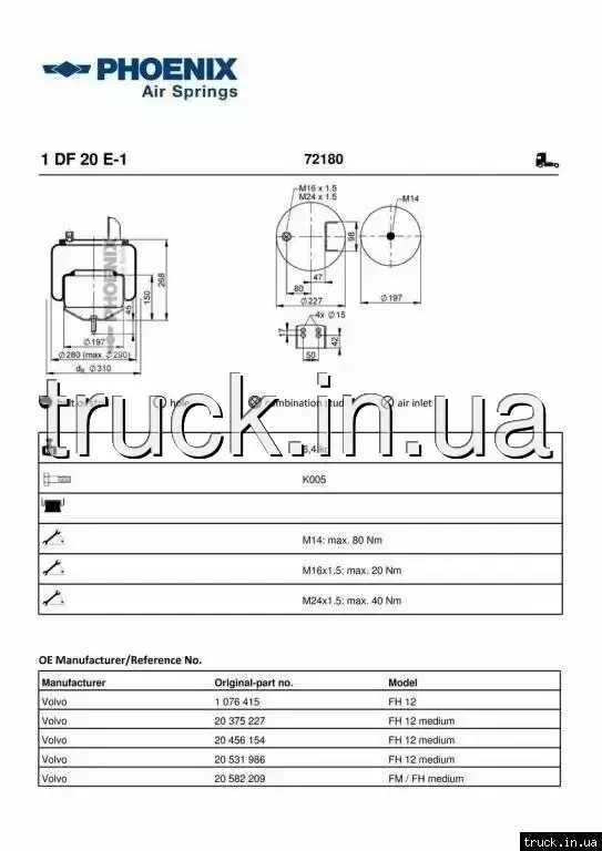 Пневмоподушка VOLVO FH N/T передняя/задняя === PHOENIX ===