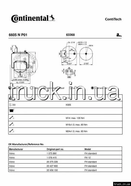 Пневмоподушка VOLVO FH передняя (задний мост) === CONTITECH AIR SPRING ===