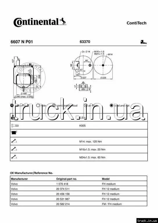 Пневмоподушка VOLVO FH задняя комплект 6607NP01, 20582214 ===CONTITECH ===