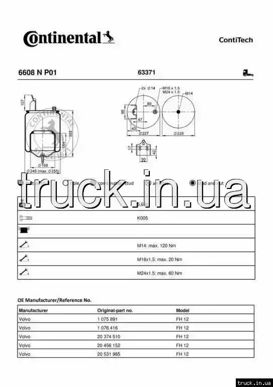 Пневмоподушка VOLVO FH задняя комплект 6608NP01 ===CONTITECH ===